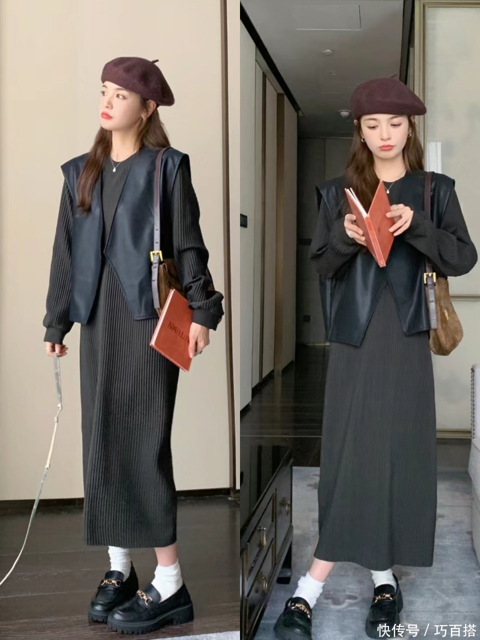 长裙单穿外加项链饰品好意思丽迷东谈主,像博主相通叠搭一件皮质皮外衣,也能赚足岁披露,黑鞋白袜上脚,澄莹乖巧,颇有一种身穿学生服的限定感,心爱乖乖女作风的学生党千万别错过这类长裙,切记,直筒并不等同于单调!